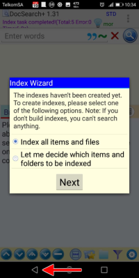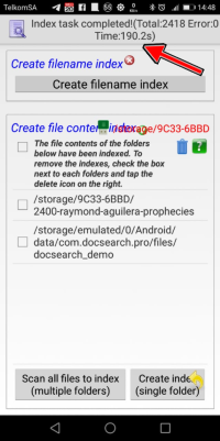 The index will begin, and will take a while. My phone took 190 seconds. At this point you are now finished and ready to do your searching from the main page.