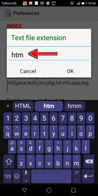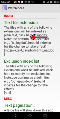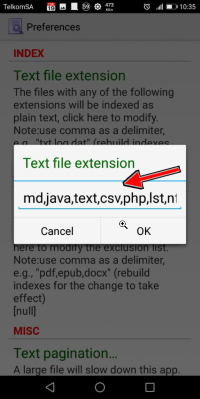Scroll down to INDEX Tap this window, called Text file extension. |